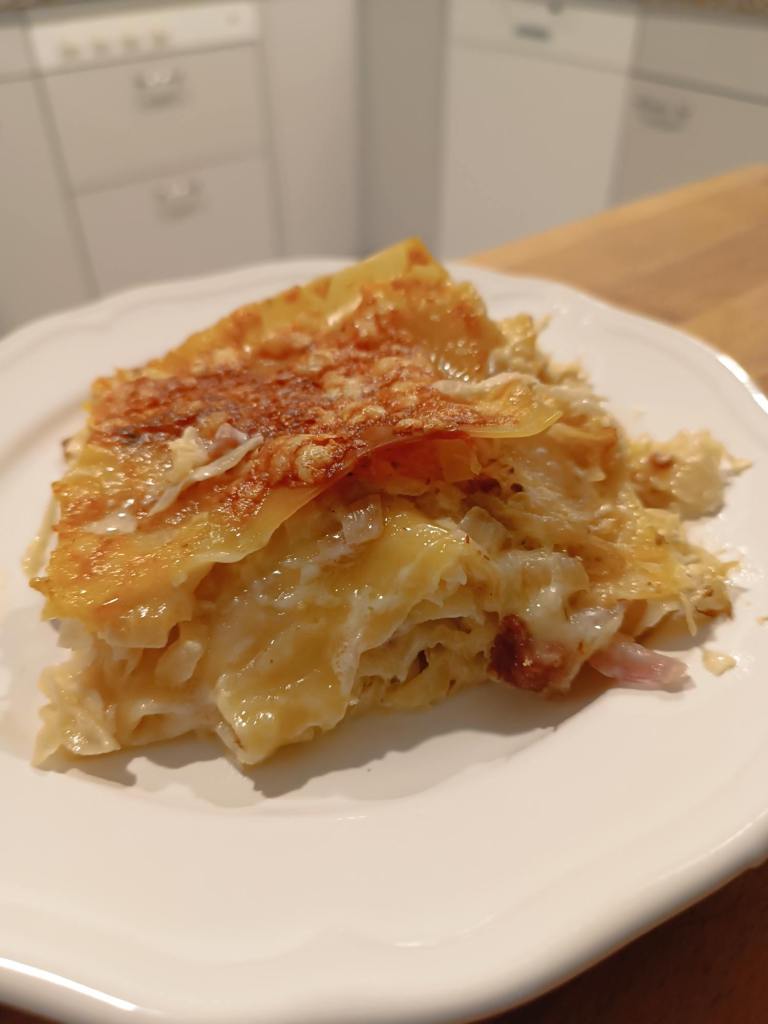 Sauerkraut Lasagne. War jetzt nicht so schlecht, mache ich aber sicher nicht noch mal. Gibt so viele bessere Sachen