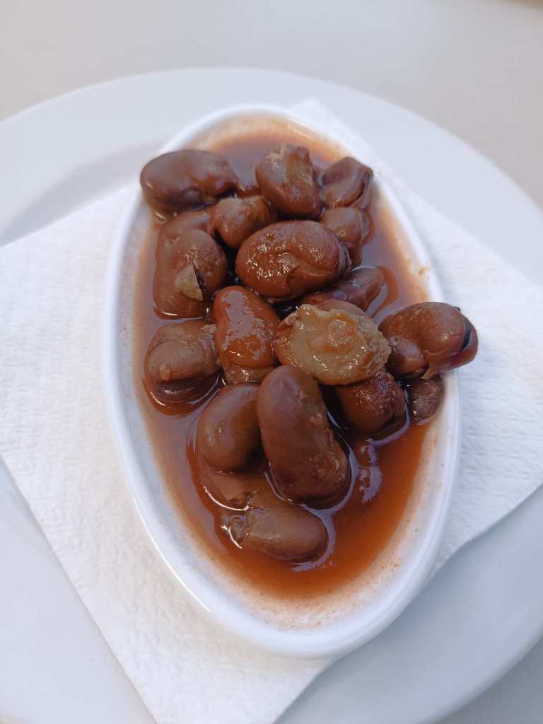 Tapas beim Weinhändler – Tortilla (kein Foto) und eingelegte Saubohnen