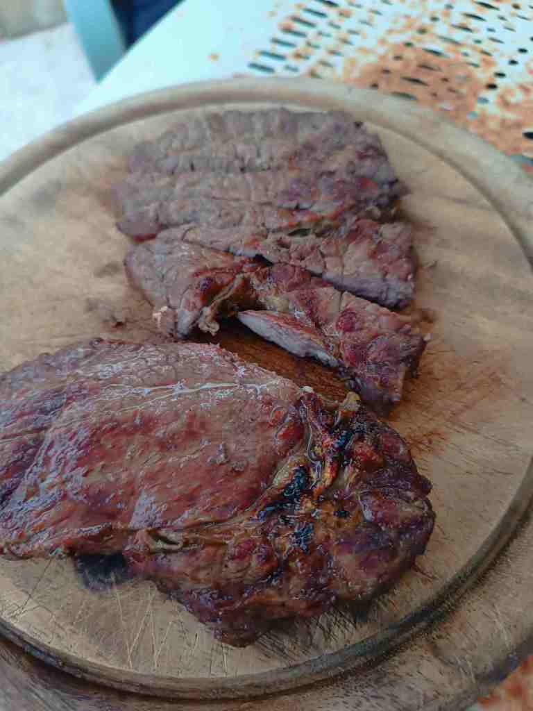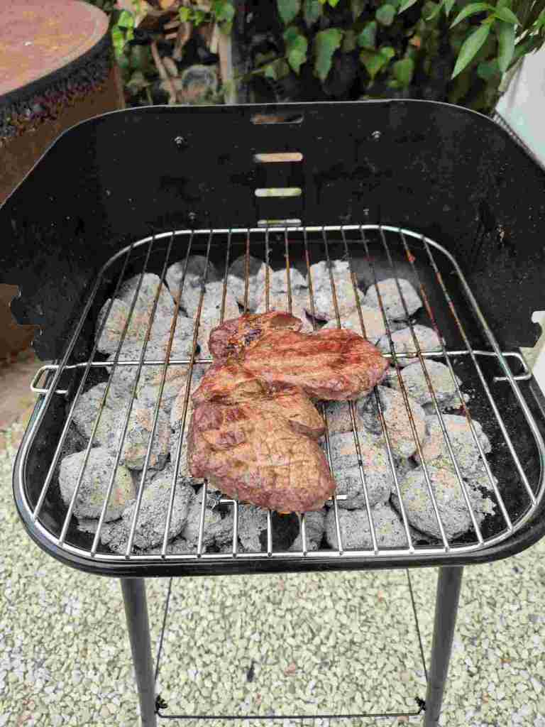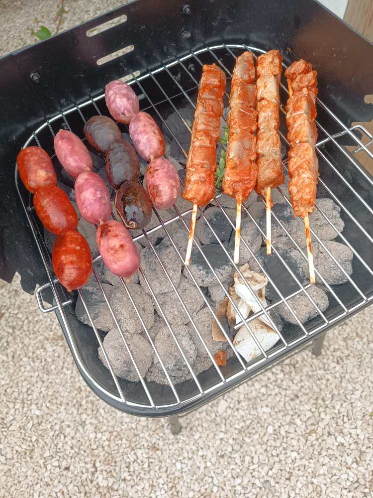 Gestern einen kleinen Grill gekauft und heute drauf gegrillt. Dazu Salat.