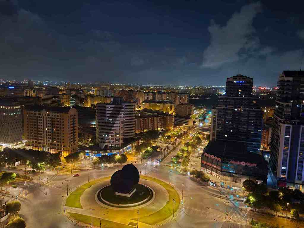 Dann packe ich eine kleine Tasche zusammen (was man so für eine Nacht im Hotel und einen Nachmittag/Abend und einen Vormittag braucht, bei der Hitze also nicht viel, lt. Internet könnte es regnen, das ignoriere ich einfach) und gegen 11:00 fahren wir los Richtung Valencia. 13:00 check ich ein, in der Minibar gibt es Cola (inklusive), da wird gleich eine getrunken. Ich ziehe mich kurz um und fahre aufs Dach – Pool und Bar und halt super Ausblick. Vor allem das Stadion, das gerade dort gebaut wird