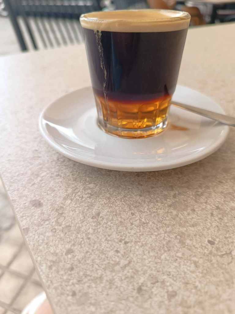 In einer Bar ruhe ich mich aus, ich bin etwas fertig. Ich trinke einen Cremeat – Kaffee mit Rum und Anis und es gibt ein paar sehr gute Tapas