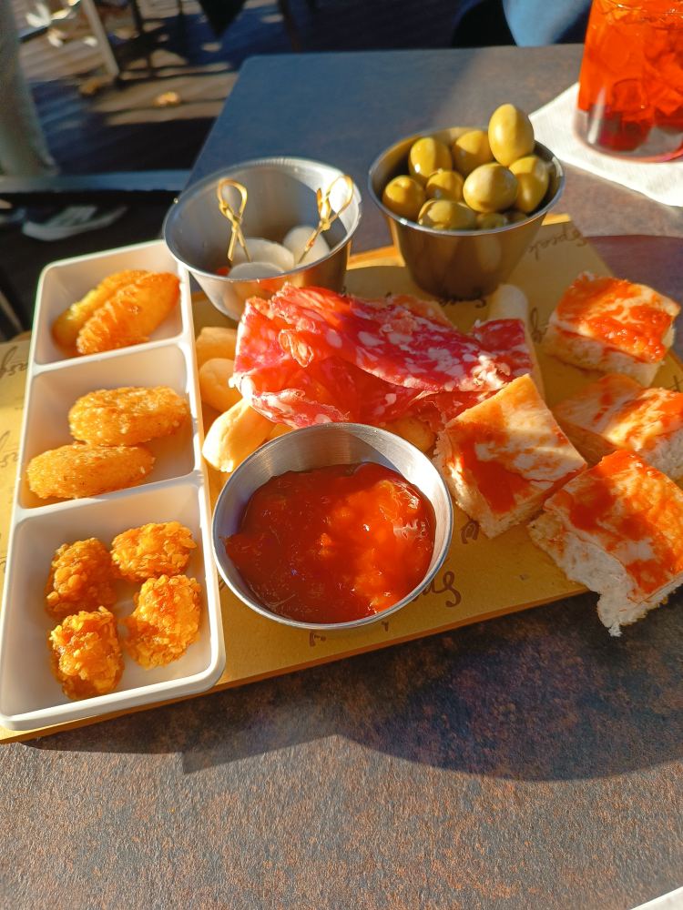 Abends – Crème Brûlée (hier allerdings Gorgonzola, das Topping dann wie gewohnt), Vitello Tonnato, Ravioli, Steak Cavallo (die Fotos sind nicht besonders, im Restaurant wars dunkel)