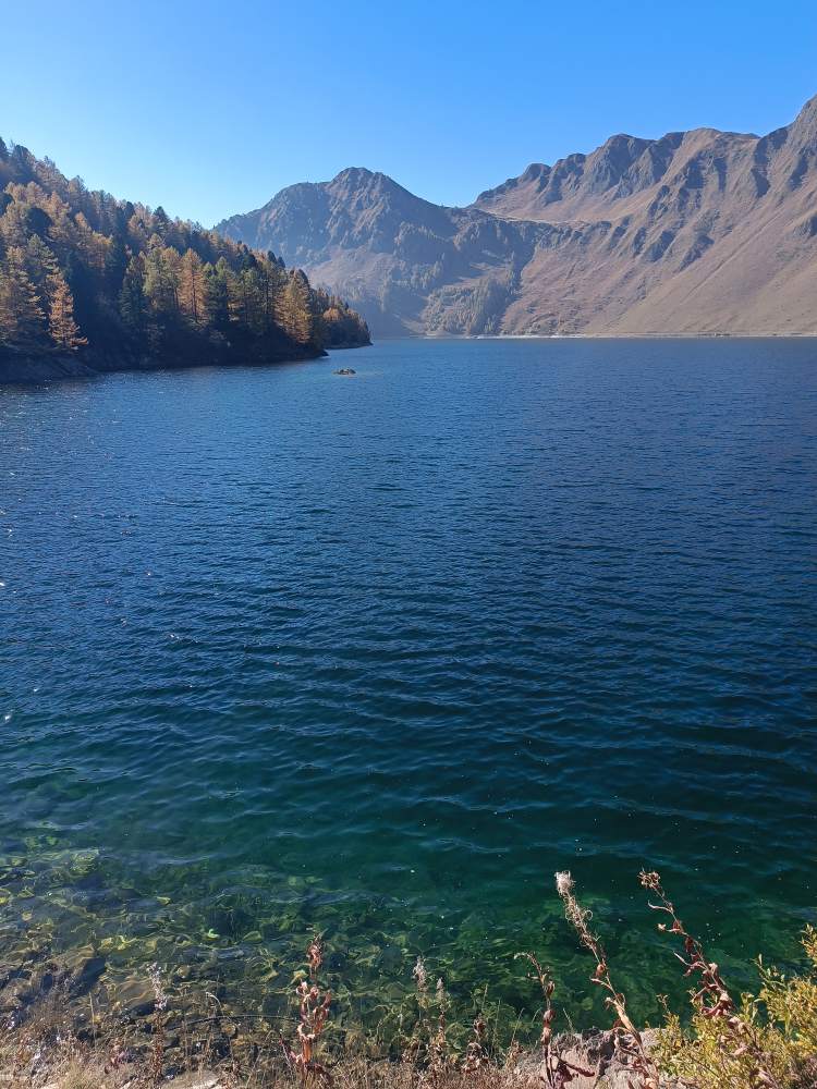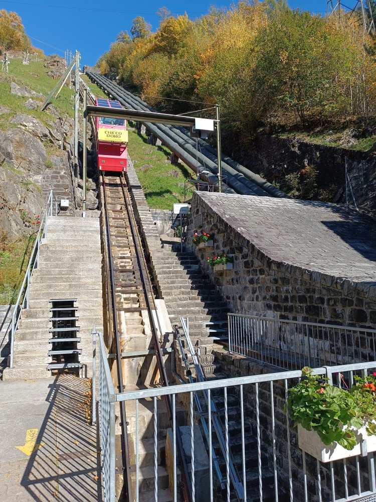 Ins Tessin, dort mit einer Bergbahn zu einem Stausee