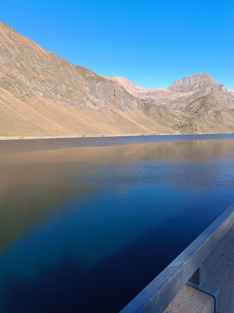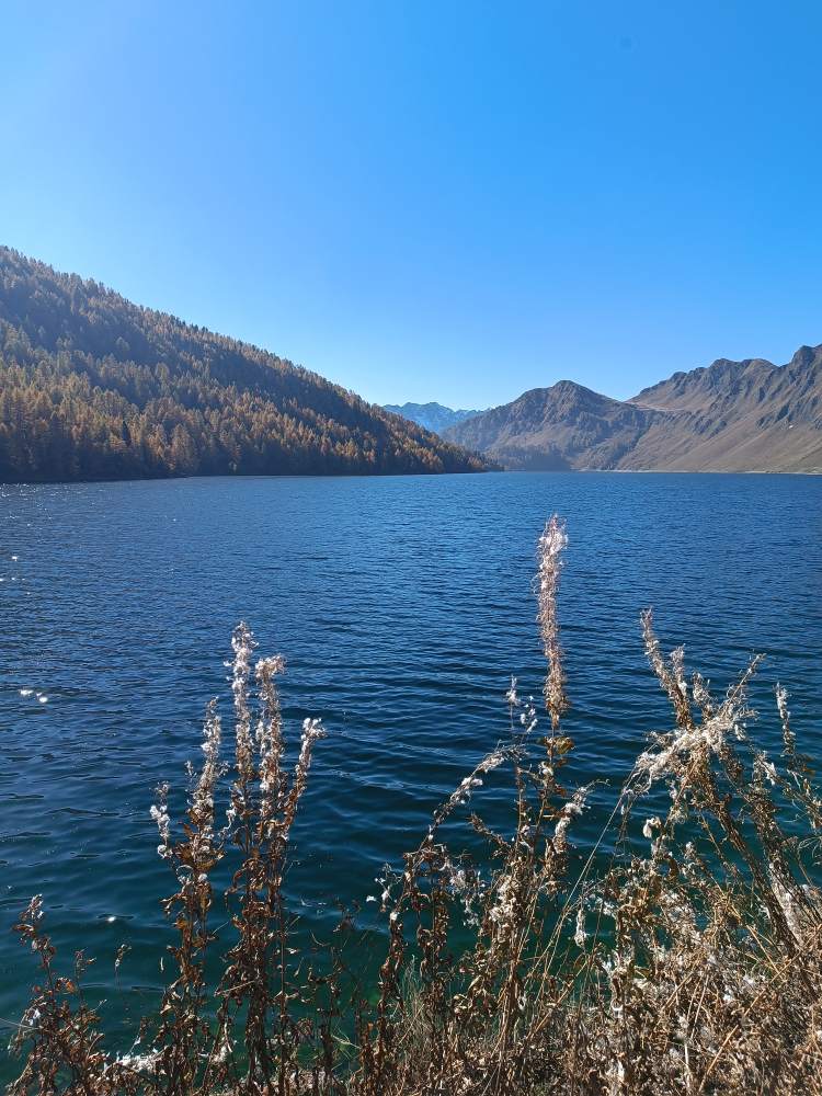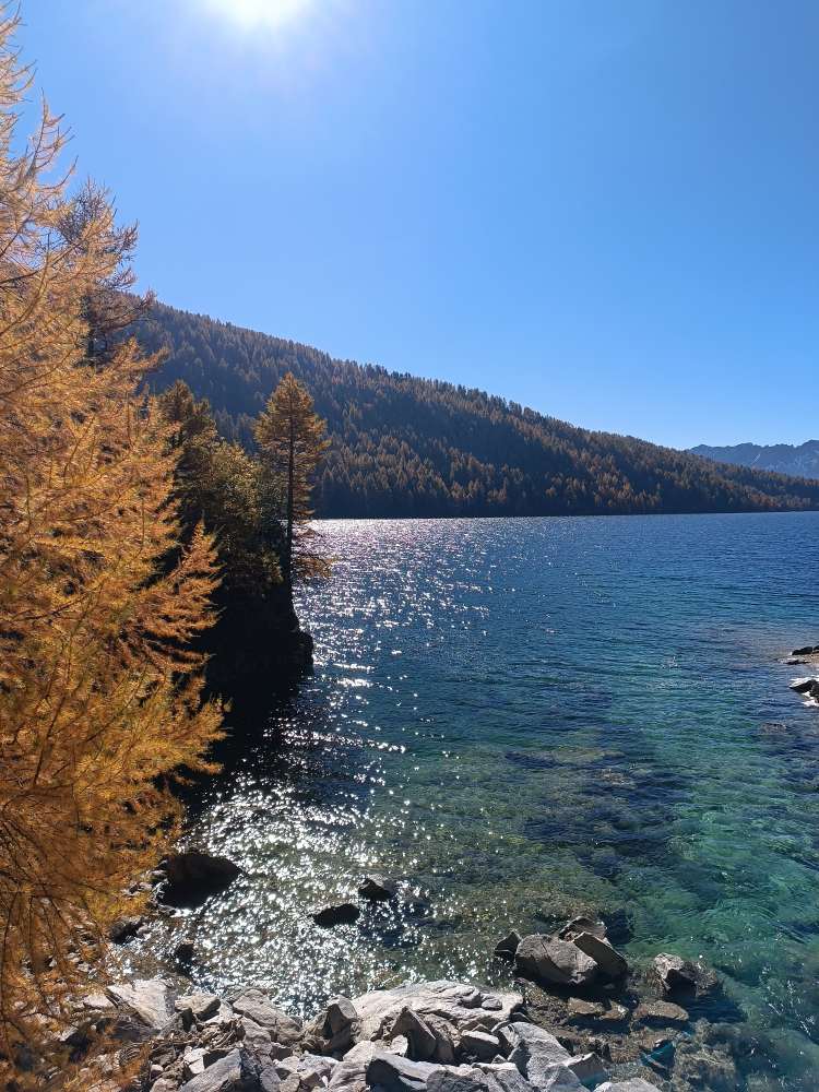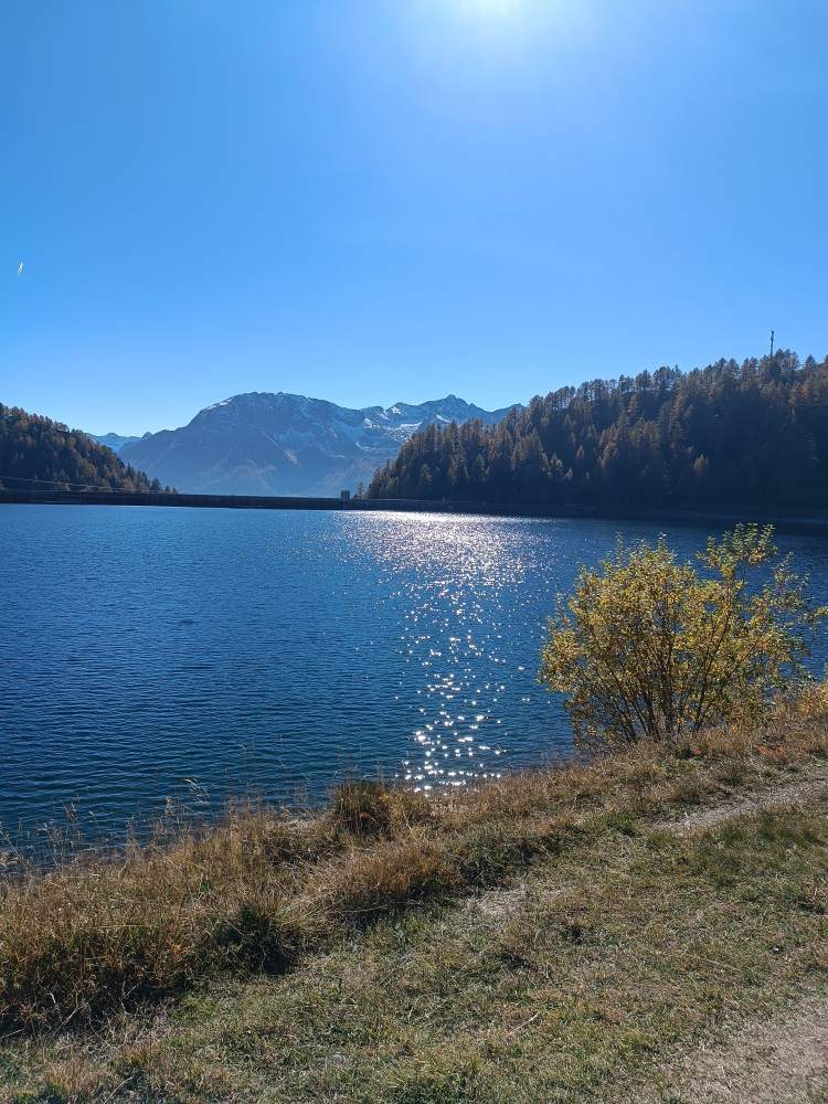 Bei Sonne und blauem Himmel um den Stausee herum