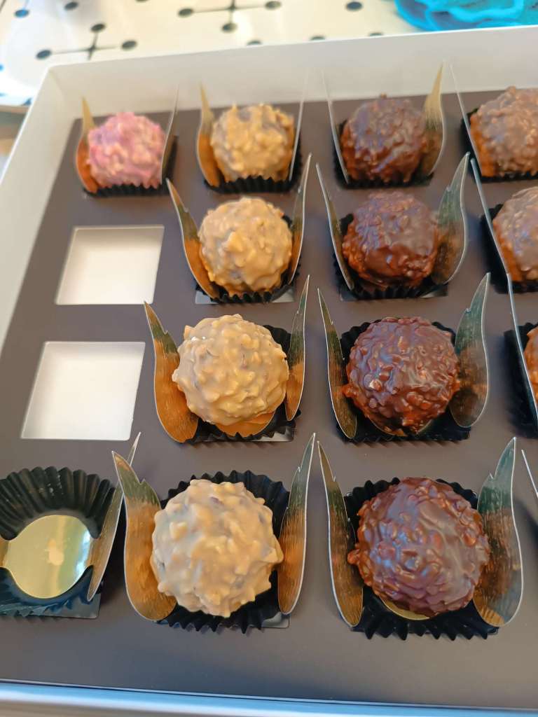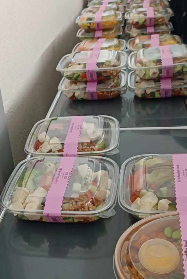 Beim Stehlunch – Salat und zum Kaffee Schokolade