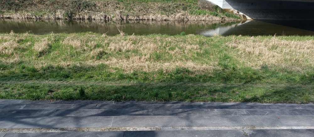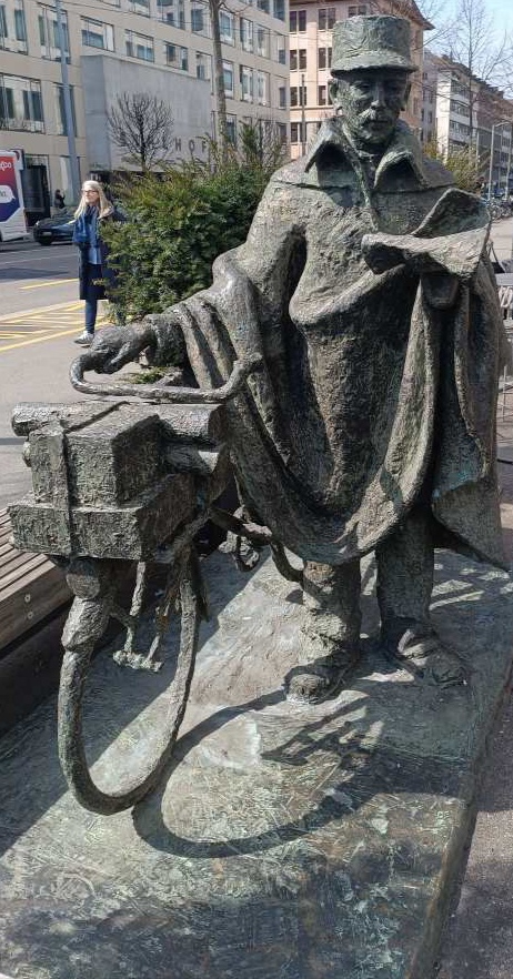 Eine lustige Figur. Den Fluss, an dem wir vorher noch saßen und in der Sonne Kaffee getrunken haben