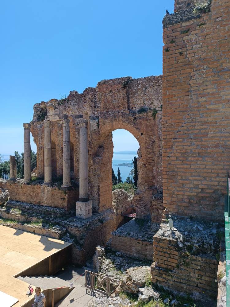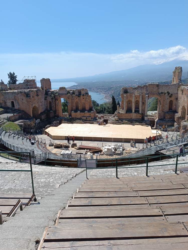 Das antike Theater, Ausblick, Ätna, lustigen Straßenlampen Fuß, Stadtmauerreste, Riesen Zitronen, beste Eisdiele der Welt (lt. Eigenwerbung, es war aber echt echt gut)