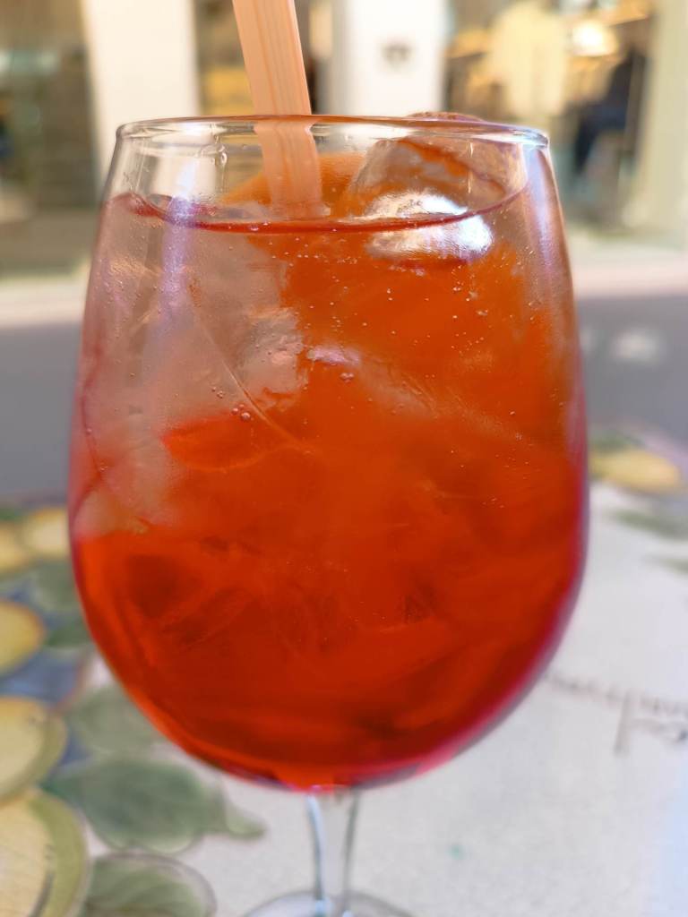 Espresso, Espresso, Espresso (immer mit Wasser). Aperol Spritz. Sizilianisches Bier (ging so), Vino frizzante