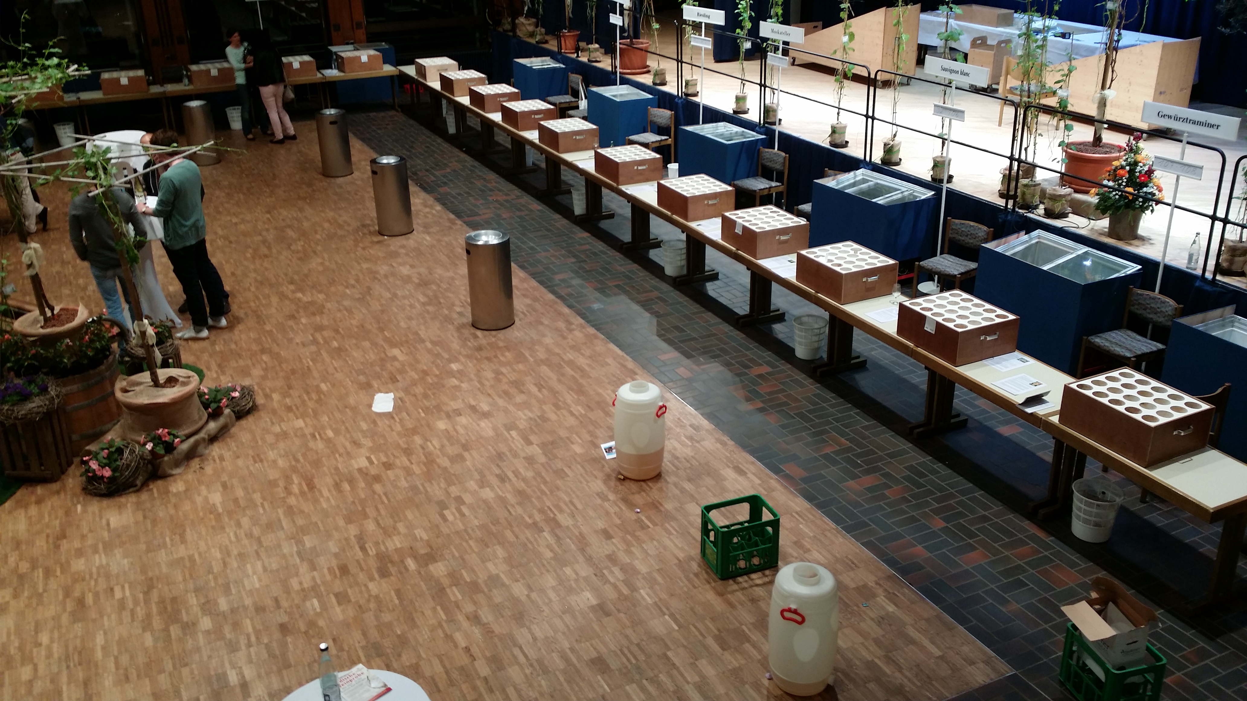 325 Weine wollten verkostet werden, so dass man / ich also regelmässig ausgespuckt habe. Und da ich – und vielleicht Ihr – schon immer mal wissen wolltet, wie es unter den „formschönen“ Spuckfässern aussieht – habe ich gewartet, bis die Aufräumarbeiten begannen und die 2 Bilder gemacht.