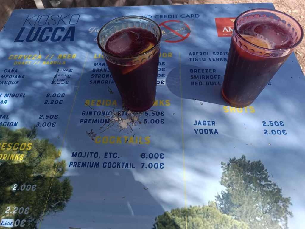 In denen sitze ich dann, spiele am Handy, relaxe. Ich bekomme ein Sandwich an den Liegestuhl gebracht, dafür revanchiere ich mich mit selbstgemachten Tinto de Verano.