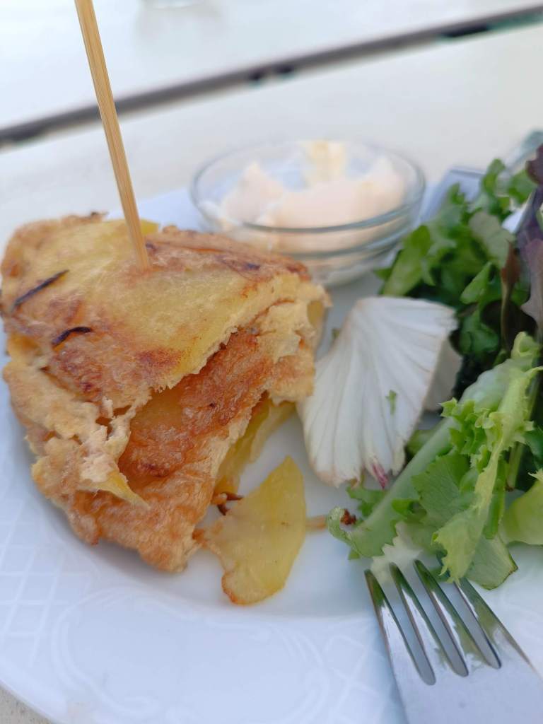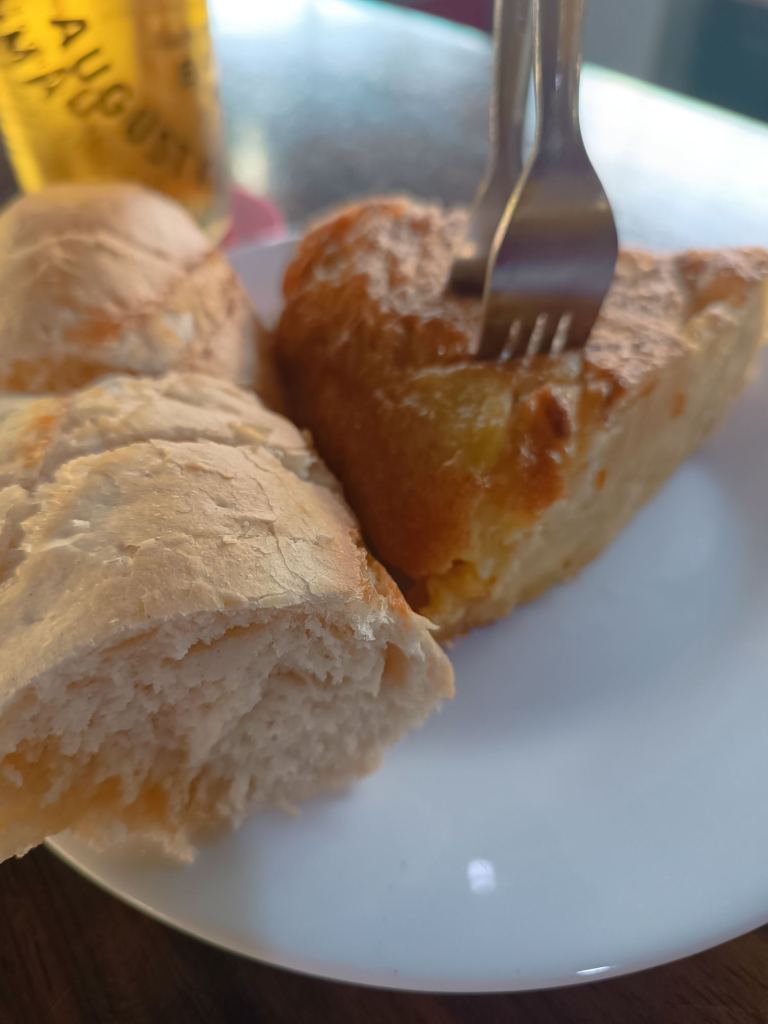 In der Bar wollte ich eigentlich nur eine kleine Tapa. Ich bekam zum Bier Bruschetta, als Tapas hatte ich Pilz Kroketten und Spiegelei mit Schinken bestellt. Sehr lecker, sehr viel, ich war mehr als satt 😋